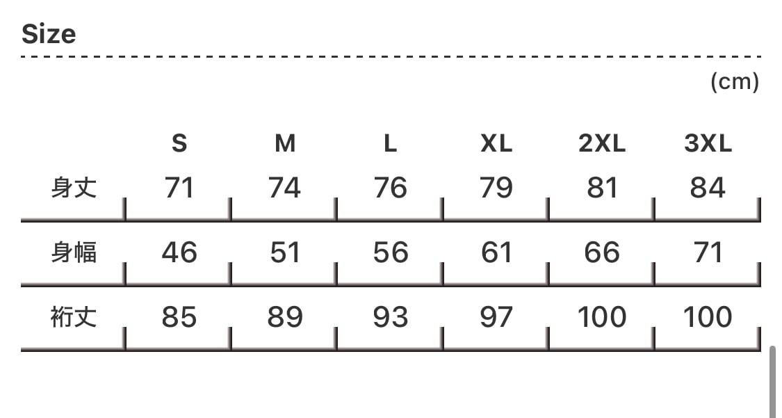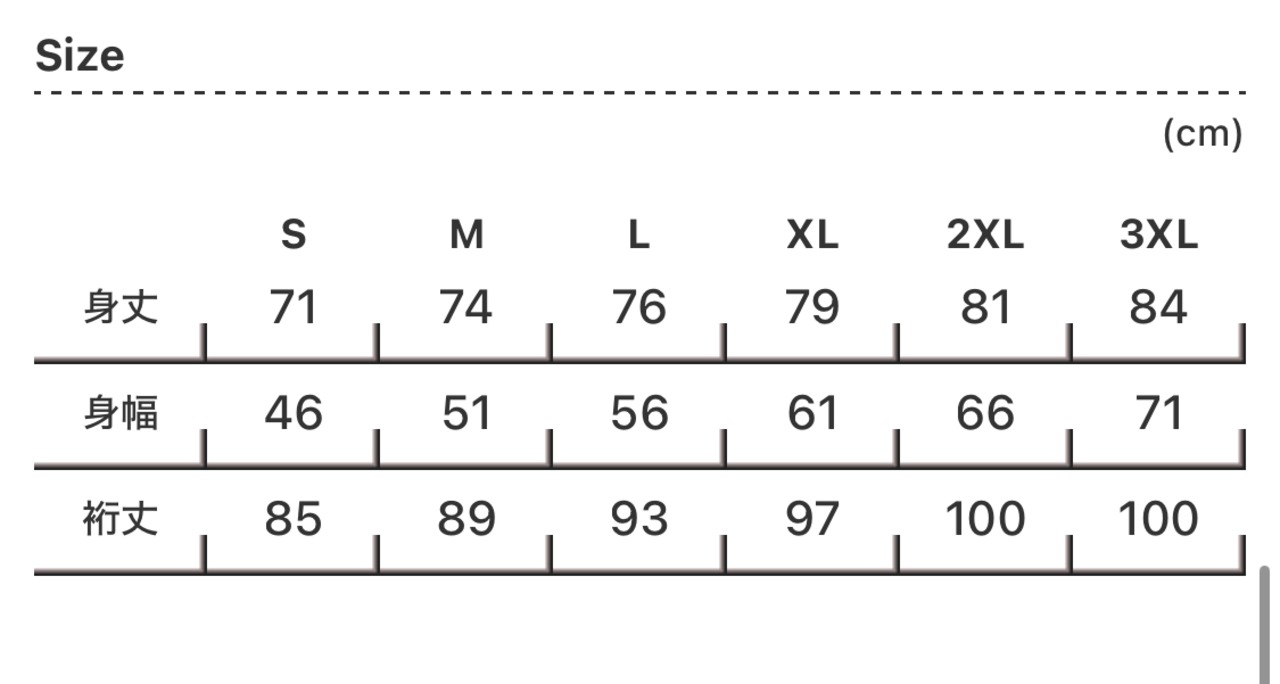 2XL: 身丈81 身幅66 裄丈100